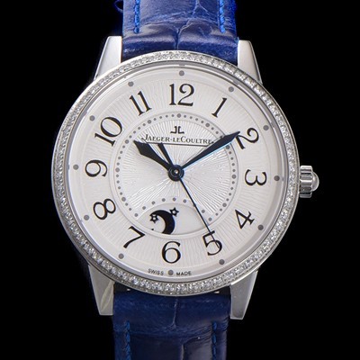 SA급 예거 르꿀르뜨 여성용 랑데뷰 나잇&데이 문페이즈 오토매틱 898A 타입 무브 34mm 보석 배젤 가죽줄 화이트다이얼 jag1521 xx > 예거르꿀뜨르 레플리카