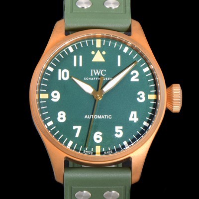 IWC Men's Big Pilot's Watch Bronze Spitfire 43mm Case Automatic 9015 Type Rubber Strap Green Dial