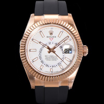 Rolex Men's Skydweller 18K Rose Gold 42mm Automatic Cal.9002 Type Urethane Strap White Dial