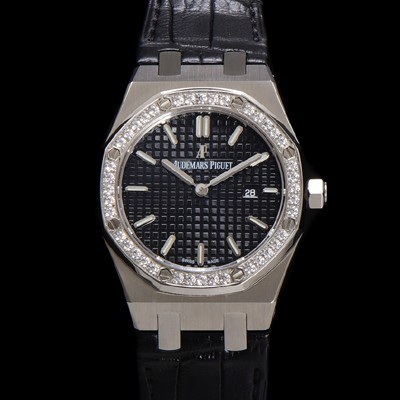 Audemars Piguet Women's Royal Oak Alligator Leather Strap 33mm Quartz Movement Black Waffle Dial