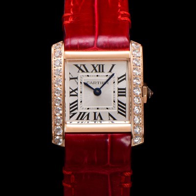 • SA급 까르띠에 여성용 탱크 WJTA0049 "프랑세즈 워치!!" 다이아몬드 스몰 모델 로즈골드 쿼츠 무브먼트 악어가죽 화이트 다이얼 car69367 xx