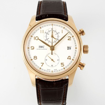 SA급 아이더블유씨 남성용 포루투기즈 IW390301 18k 로즈골드 42mm 크로노그래프 오토매틱 무브먼트 화이트 다이얼 iwc4096 xx > I.W.C 레플리카