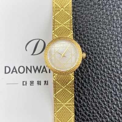 SA급  디올 여성용 라디드 사틴 25mm 18K 옐루골드 쿼츠 무브먼트 화이트 자게 다이얼 dio1002 xx