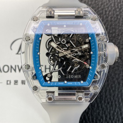 SA급 리차드밀레 남성용 RM055 트랜스파랜트 50mm 미네랄 크리스탈 기계식 수동형 무브먼트 블루 스켈레톤 다이얼 ric0328 xx > 리차드밀러 레플리카
