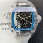 Richard Mille Men's Transparent 50mm Mineral Crystal Mechanical Manual Winding Movement Blue Skeleton Dial