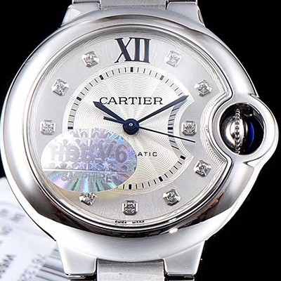 Cartier Ballon Bleu De Cartier Diamond Index White Silver Sun Dust Dial Bracelet Automatic Movement