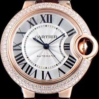 Cartier Ballon Bleu De Cartier 18k Rose Gold Diamond Bezel White Silver Sun Dust Dial Automatic Movement