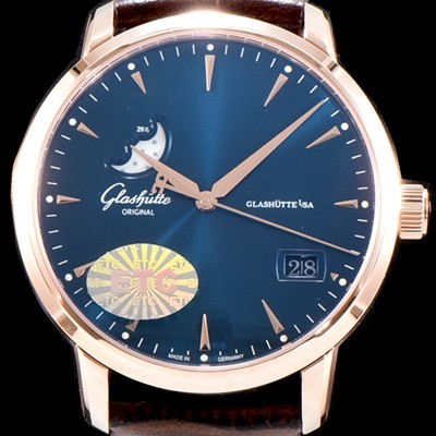 SA급 글라슈테 오리지날 남성용 세나토 "고급스러운 18K 로즈골드 아플리케 인덱스" UP!! 1-36-04-05-02-02 "엑설런스 파노라마 데이트&문페이즈" 네이비 다이얼 오토매틱 무브먼트 GLA4202 xx > 글라슈테 오리지널 레플리카