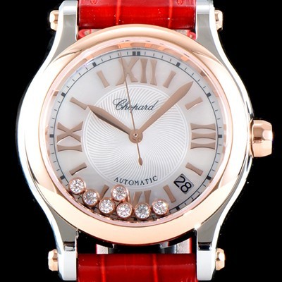 SA급 쇼파드 여성용 베스트셀러!!해피 스포츠 278559-6008 36MM 스테인리스 스틸 다이아몬드UP!! 고급스러운 18K로즈골드 투톤콤비 화이트 다이얼 오토매틱 무브먼트 CHO0243 xx > 쇼파드 레플리카