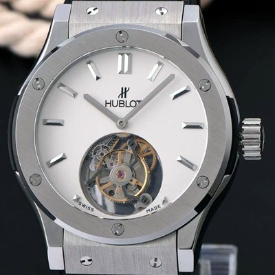 SA급 휴블렛 남성용 솔로 뱅 투어빌론 화이트 다이얼/세라믹 베젤 화이트다이얼 HUB1054 xx > 위블로 레플리카