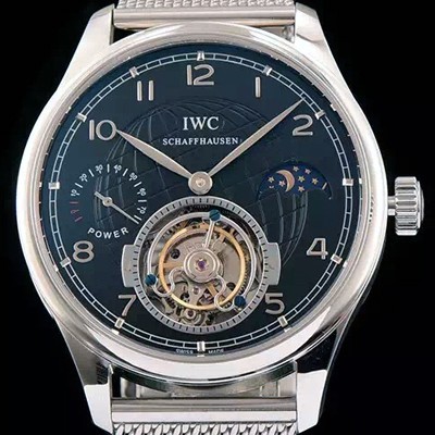 • SA급 아이더블유씨 남성용 포르투기즈 투어빌론 문페이즈 파워리져브 실버 인덱스 블랙 다이얼 스틸 메쉬 브레이슬릿 IWC0212 xx