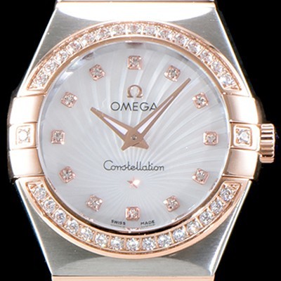 SA급 오메가 여성 컬렉션 컨스틀레이션 123.25.27.60.55.002 오메가 코-액시얼 27MM 다이아몬드 세팅 베젤 화이트 자개 다이얼 18K 로즈골드 콤비 쿼츠 무브먼트 OMG0120 xx 요약정보 및 구매