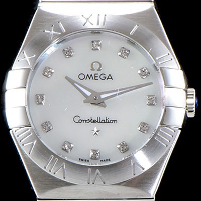 SA급 오메가 여성 컬렉션 컨스틀레이션 123.10.24.60.55.001 오메가 코-액시얼 27MM 로마 숫자가 인그레이빙된 베젤 화이트 자개 다이얼 쿼츠 무브먼트 OMG0122 xx > 오메가 레플리카
