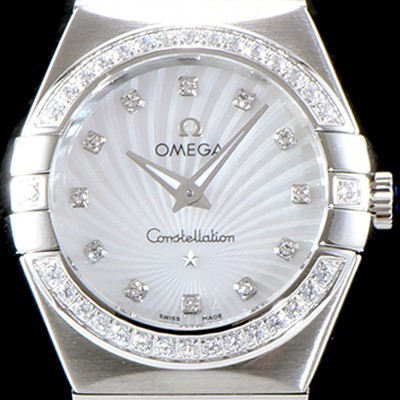 • SA급 오메가 여성 컬렉션 컨스틀레이션 123.15.27.20.55.001 오메가 코-액시얼 27MM 다이아몬드 세팅 베젤 화이트 자개 다이얼 쿼츠 무브먼트 OMG0120 xx