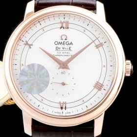 SA급 오메가 남성용 드빌 프레스티지 424.13.39.20.02.001 "스몰 세컨즈 카보숑"코-액시얼 39.5MM 크로노미터 18K 로즈골드 화이트 다이얼 오토매틱 무브먼트 OMG05011 xx > 오메가 레플리카