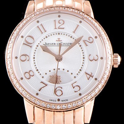 SA급 예거르꿀르뜨 남성용 랑데부 나잇&데이 3442130 미디엄 레이디 워치!! 브릴리언트 컷 다이아몬드 고급스러운 18K로즈골드 케이스 문페이즈 화이트 기요셰 다이얼 오토매틱 무브먼트 JAG0452 xx > 예거르꿀뜨르 레플리카