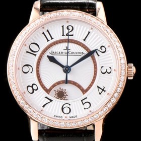 SA급 예거르꿀르뜨 남성용 랑데부 나잇&데이 3442440 레이디 워치 18K 로즈골드 최상급 다이아몬드 세팅 베젤 문페이즈 화이트 텍스쳐드 다이얼 오토매틱 무브먼트 JAG0425 xx > 예거르꿀뜨르 레플리카