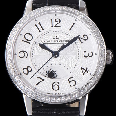 SA급 예거르꿀르뜨 남성용 랑데부 나잇&데이 3468421 레이디 워치 최상급 다이아몬드 세팅 베젤 문페이즈 화이트 텍스쳐드 다이얼 오토매틱 무브먼트 JAG0445 xx > 예거르꿀뜨르 레플리카