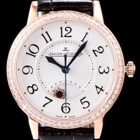 SA급 예거르꿀르뜨 남성용 랑데부 나잇&데이 Q3442520 레이디 워치 18K 로즈골드 최상급 다이아몬드 세팅 베젤 문페이즈 화이트 텍스쳐드 다이얼 오토매틱 무브먼트 JAG0440 xx > 예거르꿀뜨르 레플리카