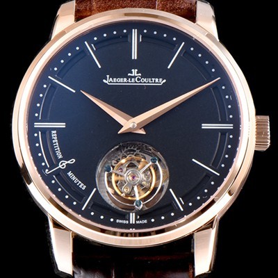SA급 예거르쿨트르 남성용 마스터 울트라 씬 1313520 미닛 리피터 플라잉 투르비옹 18K 로즈골드 블랙 다이얼 아시안 투어빌론 탑재 무브먼트 JAG0411 xx > 예거르꿀뜨르 레플리카