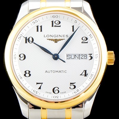 SA급 론진 남성용 마스터 컬렉션 L2.755.5.78.7 클래식 데이데이트 논크로노 모델!! 18K 옐로우골드 투톤콤비 화이트 텍스쳐드 다이얼 브레이슬릿 오토메틱 무브먼트 LON0400 xx