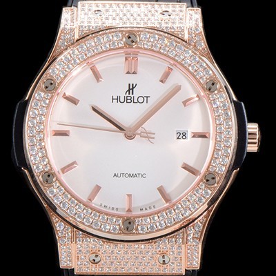 Hublot Classic Fusion Gold-Diamonds Edition 18K RoseGold White Dial Japanese 9015 Automatic Movement