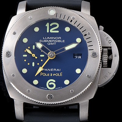 Panerai Men's Submersible 1950 3Days GMT Titanium Diver's Watch Automatic Cal.P 9001 Movement Blue Dial