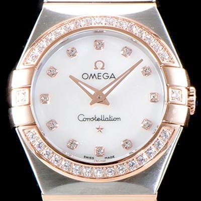 SA급 오메가 남성용 여성 컬렉션 컨스틀레이션 123.25.24.60.55.001 오메가 코-액시얼 27MM 다이아몬드 세팅 베젤 화이트 자개 다이얼 18K 로즈골드 콤비 쿼츠 무브먼트 OMG4125 xx > 오메가 레플리카