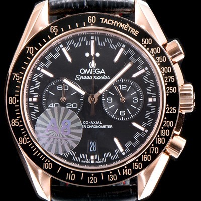 Omega Speedmaster 18k Rose Gold Racing Co-Axial Master Chronometer Tachymeter Chronograph Black Dial Japan Quartz Movement