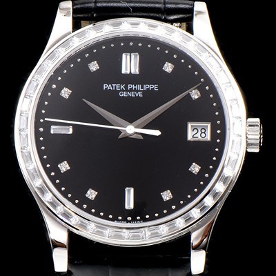 Patek Philippe Calatrava SS Best Edition 18k White gold Diamond Bezel Black Dial Automatic Movement