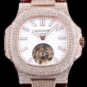 SA급 파텍필립 남성용 노틸러스 뚜르비옹 18K 로즈 골드 최상급쥬얼 다이아몬드 풀 세팅 케이스 화이트 텍스쳐 다이얼 아시안 투어빌론 탑재 PAT0130 xx > 파텍필립 레플리카