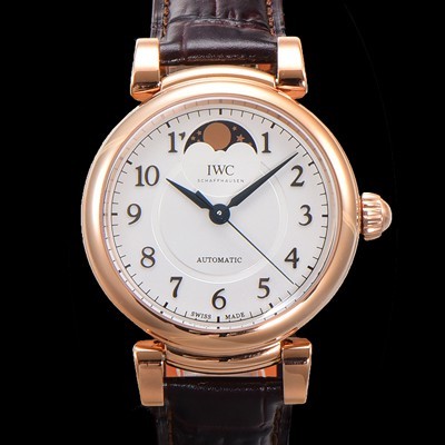 SA급 아이더블유씨여성용 다빈치 오토매틱 문페이즈 36mm 18K 로조골드 가죽줄 화이트다이얼 iwc56034 xx > I.W.C 레플리카