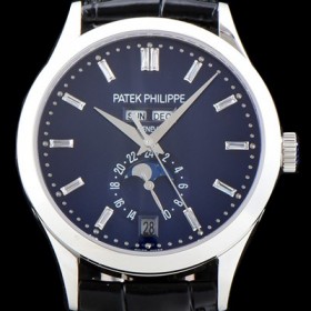 SA급 파텍필립 남성용 신형!!컴플리케이션 5396R-014 에뉴얼 캘린더 데이-데이트 문페이즈 바게트 컷 다이아몬드 인덱스 네이비 다이얼 Cal.324 S C 오토매틱 무브먼트 PAT0101 xx > 파텍필립 레플리카