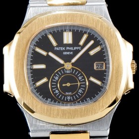 SA급 파텝필립 남성용 노틸러스 최신버전 업그레이드형!! "스몰 세컨즈-데이트" 18K 옐로우골드 콤비 블랙 텍스쳐드 다이얼 브레이슬릿 Cal. 324 자동형 무브먼트 PAT0021 xx