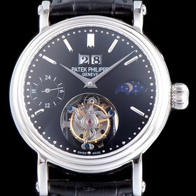 • SA급 파텍필립 남성용 그렌드 컴플리케이션 투어빌론 무브먼트 문페이즈 블랙 다이얼 PAT0100 xx