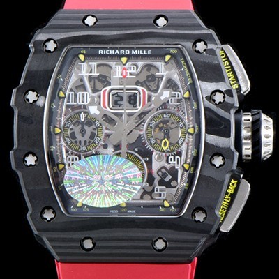 SA급 리차드밀레 남성용 오토매틱 플라이백 RM11-03 오버사이즈 데이트 크로노그래프레드 포지드 카본 케이스 스켈레톤 다이얼 오토매틱 무브먼트 ric0278 xx 요약정보 및 구매