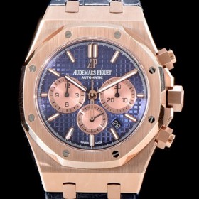 SA급 오데마피게 남성용 "New 41mm사이즈 가죽밴드 UP!!"로얄오크 26331OR.OO.D315CR.01 크로노그래프 고급스러운 18K 로즈골드 케이스 네이비 와플 다이얼 신형 ETA 7750B-2 오토매틱 무브먼트 AUD0101 xx > 오데마피게 레플리카