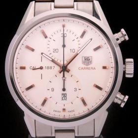 Tag Heuer Carrera CAL1887 Chronograph SS White Dial on SS Bracelet A7750