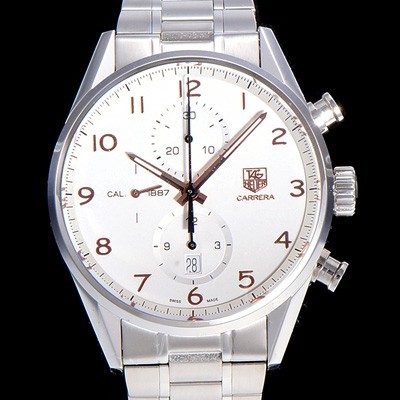 Tag Heuer Carrera CAL1887 Chronograph SS White Dial on SS Bracelet A7750