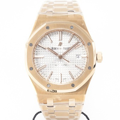 • SA급 오데마피게 남성용 하이엔드 로얄오크 15400OR.OO.1220OR.02 18K 로즈골드 오토매틱 Cal.3120타입 41mm 실버 와플 다이얼 aud6563 xx