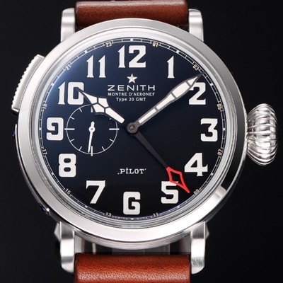 Zenith Pilot Type 20 GMT 1903 Black Dial on Brown Leather Strap A23J Automatic