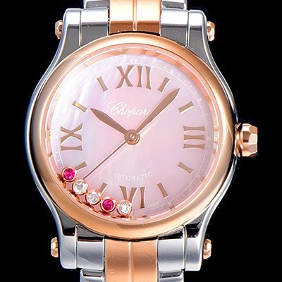 SA급 쇼파드여성용 해피스포츠 미니 오토매틱 30미리 레이디스 18K로즈골드 투톤콤비 장식 자게다이얼 핑크 CHO77241 xx > 쇼파드 레플리카