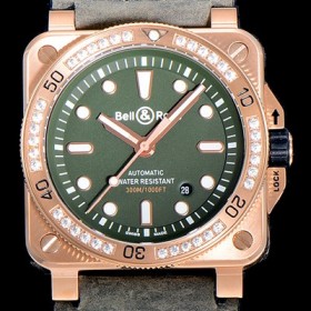 Bell & Ross BR 03-92 Diver 18K Rose Gold 42mm Mens Automatic Green Dial