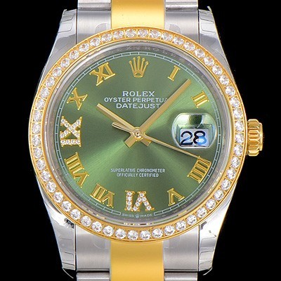 • SA급 로렉스남성용 데이져스트 오토매틱 36미리 18K 옐루골드 보석/큐빅 그린다이얼 3235무브 ROL83734 xx