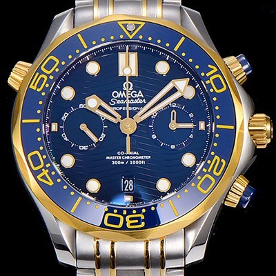 SA급 오메가남성용 씨마스터 다이버 300M 마스터 크로노그래프 옐루골드 44mm 블루다이얼 OMG53678 xx > 오메가 레플리카