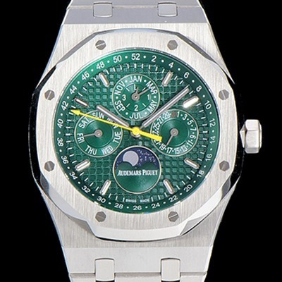 • SA급 오데마피게 남성용 로얄오크 페퍼츄얼 41미리 오토매틱 5134타입 매탈줄 문페이즈 그린다이얼 AUD74416 xx