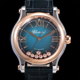 SA급 쇼파드 여성용 해피 스포츠 오토매틱 ETA2892-2 타입 36mm 래이디스/금장시계 18K로즈골드 가죽줄 블루다이얼 cho74208 xx > 쇼파드 레플리카
