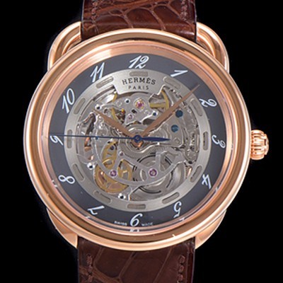 SA급 애르메스 남성용 아쏘 오토매틱 41mm 18K 로즈골드 가죽줄 스켈래톤 다이얼 her07859 xx > 에르메스 레플리카