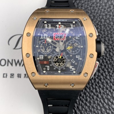 SA급 리차드밀레 남성용 RM11 크로노그래프 오토매틱 18K 로즈골드 50미리 스켈래톤 블랙다이얼 RIC08722 xx > 리차드밀러 레플리카