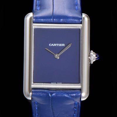 SA급 까르띠에 여성용 탱크 머스트 WSTA0054 로마 인덱스 33.7mm 블루 다이얼 악어가죽줄 쿼츠 무브먼트 CAR00576 xx > 까르띠에 레플리카